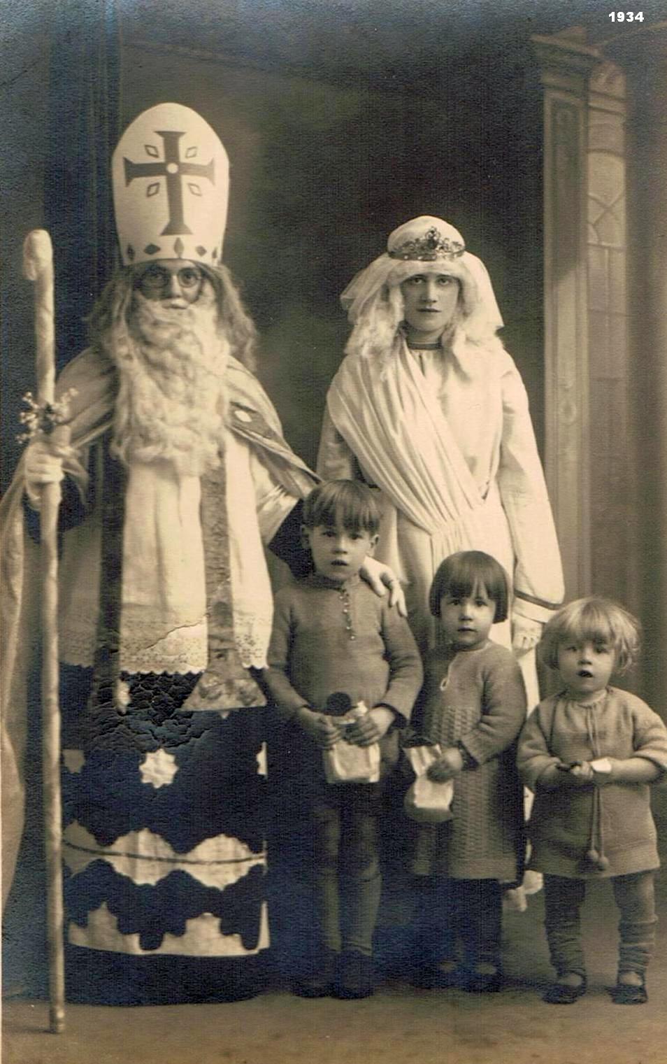 Gepubliceerd 5 december 2016 op 954 × 1521 in Hoor wie klopt daar, kinderen… ← Vorige Volgende → Een vrouwelijke Sint (Suzanne Verkimpe) en een witte knecht (Elza Verheye) – (kinderen Fons, Godelieve en Cecile Hooft, 1934 – Foto Hooft)