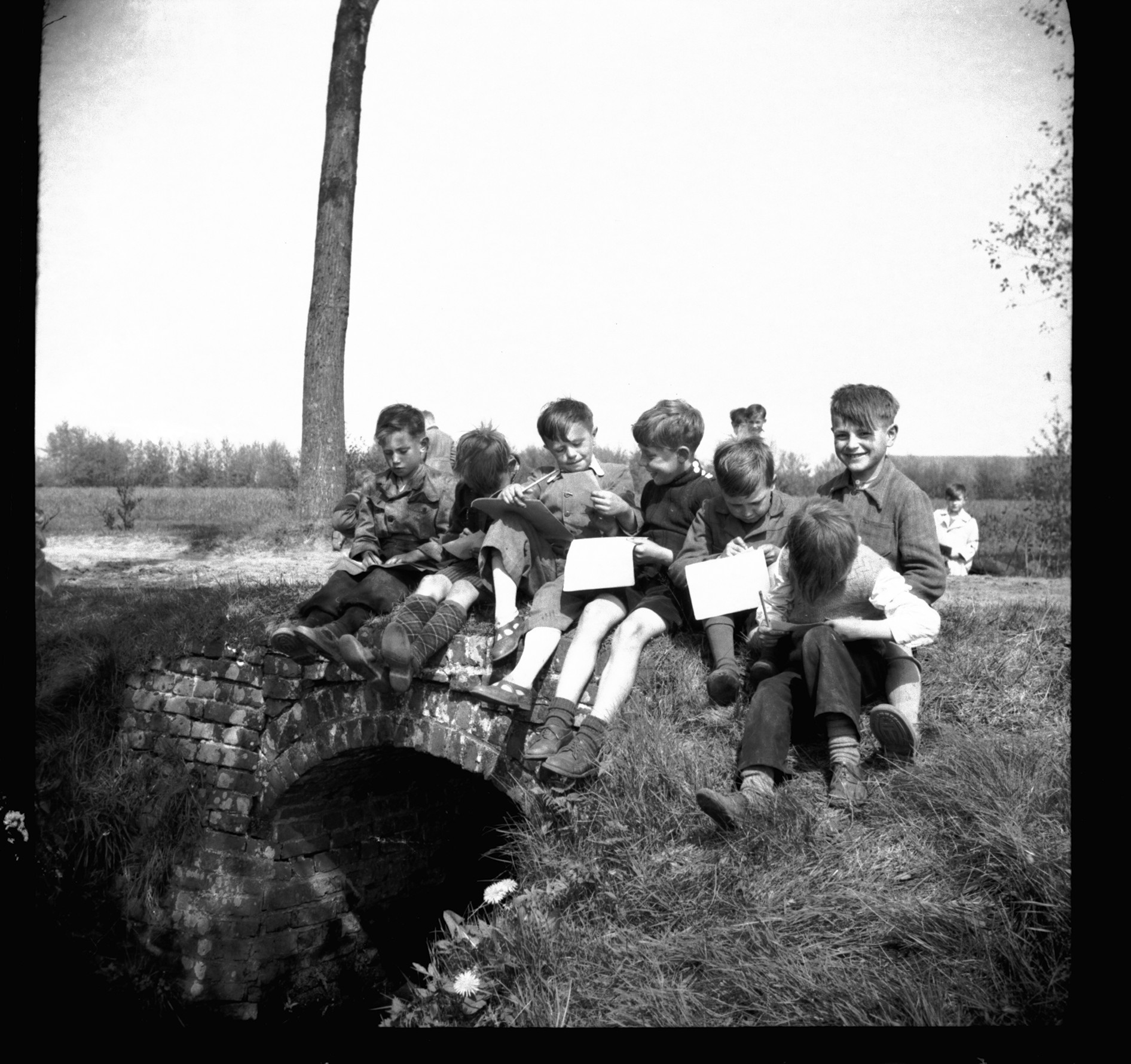 Dat waren de momenten dat we onze tijd verspeelden en steevast te laat op school waren. We waren kinderen, maar wisten ons uit de slag te trekken. “Meester, de beek stond onder… Het was zeer gevaarlijk de oversteek te doen”, of “we hebben gewacht tot het water wat gedaald was”, of “we hebben moeten wachten tot een volwassene ons kon begeleiden”. De meester wist schouderophalend wel welk vlees hij in de kuip had. Voor de arbeidsters van de plaatselijke sigarenfabriek was deze toestand minder aangenaam, soms moesten ze hun dagtaak aanvangen met natte rokken.