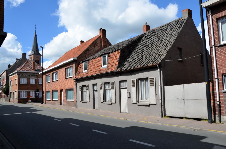 Nog een mooie illustratie van de vergankelijkheid van erfgoed. Ook dit huisje in de Hellestraat 4 werd in de Inventaris opgenomen als “grijsgeschilderd dorpshuisje”. Ondertussen staan ook daar appartementen (zie verder).