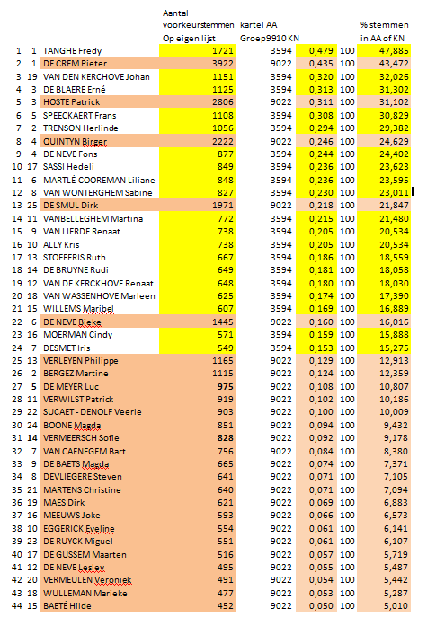 2012 Voorkeurstemmen (aantal en percentages) op eigen lijst Kartel Aalter en Groep9910 Knesselare Gepubliceerd 31 oktober 2017 op 475 × 687 in Wringt fusie lokaal politiek leven de nek om? ← Vorige Volgende →