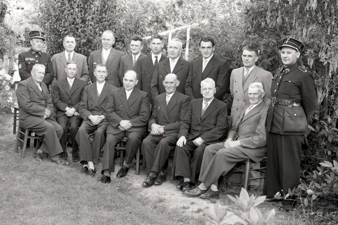 Het gemeentebestuur én zowat het voltallige gemeentepersoneel kort voor de verkiezingen van 1958