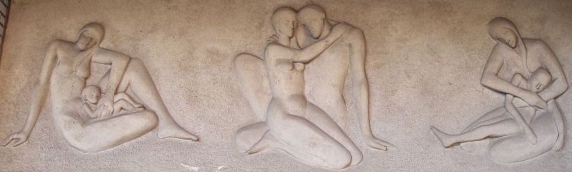 Op vraag van het gemeentebestuur beeldhouwde de Knesselaarse beeldhouwer Gerard Mestdagh een “bas-reliëf” boven de inrijpoort van het gemeentehuis. Het moest een werk worden dat voor heel de gemeente zichtbaar was.