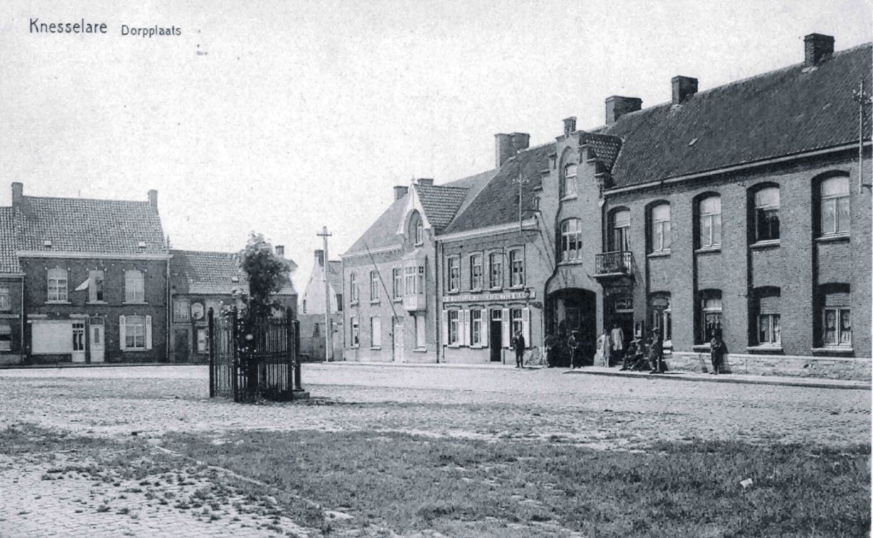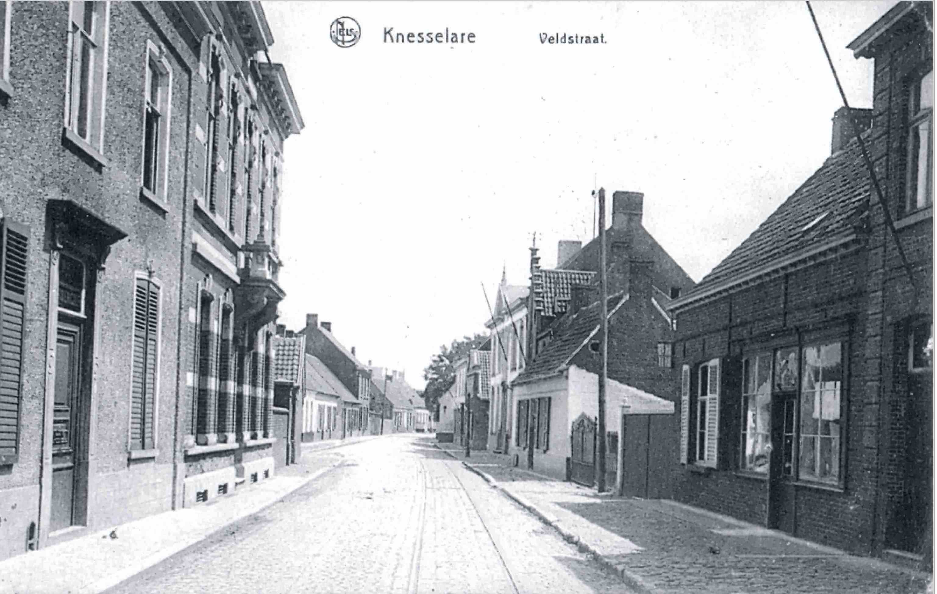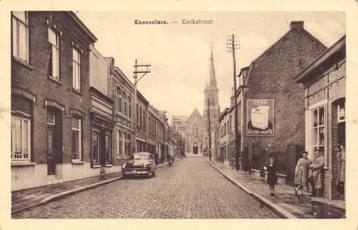 Voor de start moeten we al meer dan honderd jaar terug. De oudste Knesselaarse postkaarten werden vervaardigd door de firma Hendrickx uit Antwerpen. Zij hadden eigen fotografen en drukten kaarten voor heel België. De oudste in de collectie van Eric is in april 1902 verstuurd. Deze reeks va, Hendrickx bestaat uit twaalf kaarten, waaronder bovenstaand zicht uit de Kerkstraat. Heel typisch voor deze oudste prentkaarten is de witruimte vooraan. Die was voorzien voor de boodschap. Men schreef toen (en verplicht tot 1905) nog uitsluitend op de voorzijde (fotozijde) van de kaart. De achterzijde was exclusief gereserveerd voor de adresgegevens.