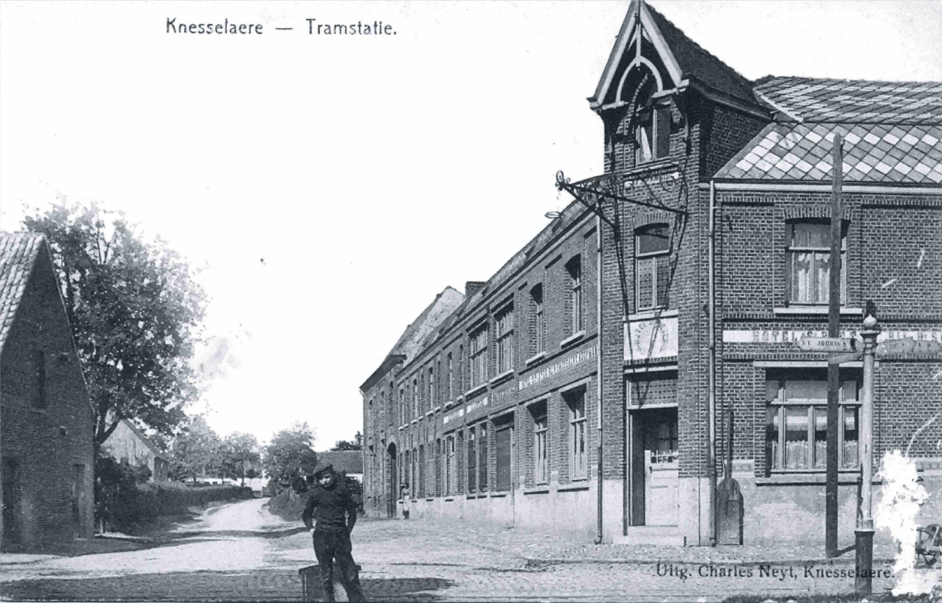Een volgende Knesselaarse handelaar die brood zag in de verkoop van dorpszichten was Charles Neyt. Bij hem kon je een mooie reeks kopen bestaande uit twaalf kaarten. De foto’s werden gemaakt en gedrukt door de Gentenaar Théo De Graeve, van wie bekend is dat hij met een huifkar reizend opnamen maakte voor zijn zichtkaarten. De oudste die werd verstuurd (collectie Eric VH) dateert van 18 juli 1908. De opdruk vooraan bevat een serienummer en vermelding ‘Uitg. Charles Neyt ,Knesselaere’.