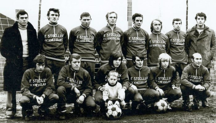 Eerste ploeg 1970 liefhebbersverbond. Daniël De Spae, Janot De Deyne, Jozef Stevens, Eric Lefevre, Freddy De Vreese, Randy Geldhof, Marc Locy, Jean Van Landschoot. Onderaan: Dirk Ryserhove, François Claeys, Placide Ryserhove, Joost Saintobyn, Louis Van der Steen, Willy De Neve