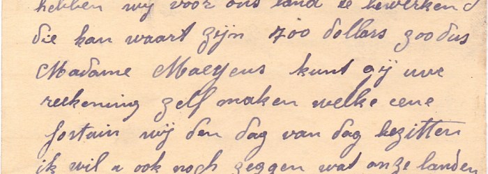 In een brief naar de familie Romanus Maeyens wenst Theofiel molenaar Maeyens en zijn vrouw proficiat met het huwelijk van hun dochter Jeanette. In die brief heeft hij het ook over de rijkdom en eigendommen die de familie De Lichte in Canada verworven heeft. De rijkdom zou er vergaard zijn bij de ontginning van bossen en de houtverkoop.