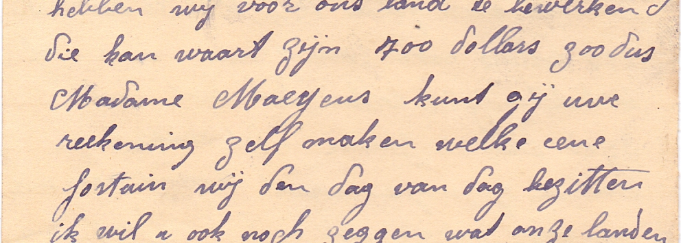 In een brief naar de familie Romanus Maeyens wenst Theofiel molenaar Maeyens en zijn vrouw proficiat met het huwelijk van hun dochter Jeanette. In die brief heeft hij het ook over de rijkdom en eigendommen die de familie De Lichte in Canada verworven heeft. De rijkdom zou er vergaard zijn bij de ontginning van bossen en de houtverkoop.
