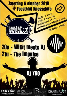 De jonge muzikanten van WIKit (de “jongskes van de fanfare”) kruiden zaterdag hun optreden met vocaal talent uit eigen rang, met samenspel met een DJ en met de in het WIKit-nest geboren coverband The Impulse. Mooie mix voor een uitje op kermiszaterdag 6 oktober.