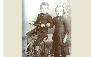 Herman (°1884) en Marietje Van de Casteele, vroege jaren 1890. Oudste Knesselaarse (studio)foto met een “rijwiel”?