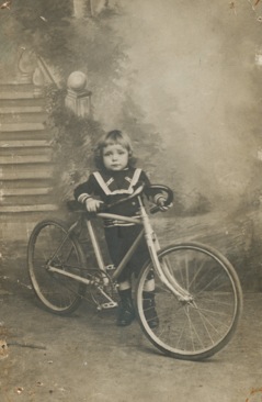 Herman (°1884) en Marietje Van de Casteele, vroege jaren 1890. Oudste Knesselaarse (studio)foto met een “rijwiel”?
