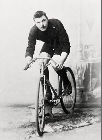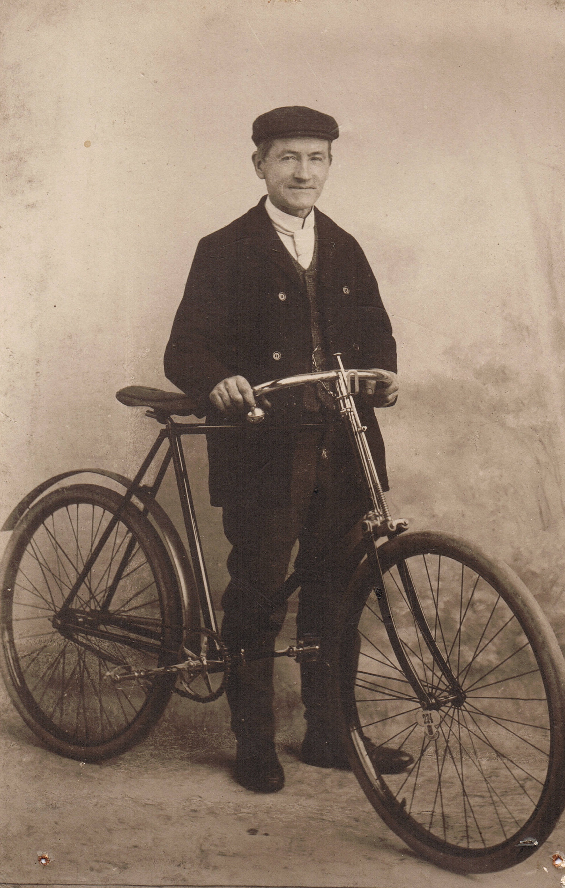 Foto van Emiel Buyse (de oom van de gelijknamige schilder) uit 1907. Alvast in onze collectie een van de oudste foto’s met een duidelijke focus op de fiets.