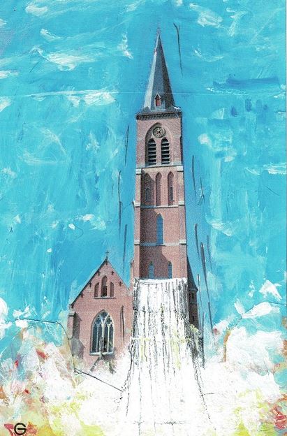 Om eens over na te denken bij de eerste of de twaalfde slag vanavond: hieronder voor ons in kleur gezet een aquarel van Gab VdB, een prentenbak van onze fotograaf Paul V en een cartoon van JuGo, bijgenaamd Stokkers.