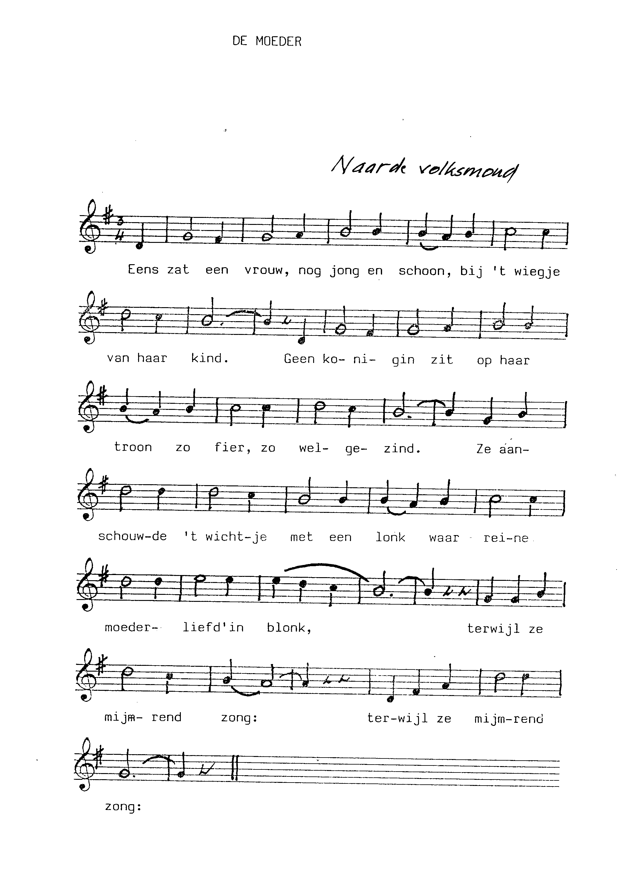 Vanzelfsprekend lees je zo’n teksten best met wat empathie voor de tijd van toen, de jaren 1860. De gedichten/liederen zijn vooral romantische mijmeringen op rijm, in dit geval over de moederliefde. Maar ook dat moet eens kunnen. De boodschap is duidelijk.