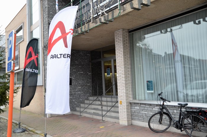 Het gemeentehuis wacht alleen nog op de fatale slag. OCMW idem. Men gedoogt er nog wat administratieve achterhoedebezigheden, meer niet. Was het neerpoten van al die supervlaggen op het dorpsplein nu echt nodig? Een Aalterse vlag op het balkon, dat leek ons al voldoende. Nu hangen er drie.