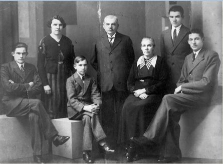 De familie Verhoestraete in de jaren 1930. Willy, Gisèle, André, vader Henri en moeder Judith, Gentiel en André.