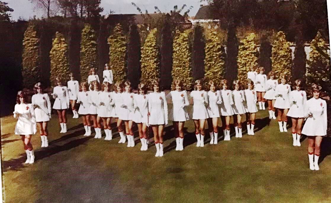 Op initiatief van mevrouw Vanthuyne – De Baets werd op 8 maart 1972 een majorettenshow- en dansgroep opgericht. Jonge tieners van toen, vandaag cirkelend rond hun zestigste. Eigenlijk wel een fenomeen, zo’n dansgroep. We komen daar nog wel uitgebreider op terug, wat verderop in de jaren 1970 en 1980. De groep kreeg een eigen bestuur met in het begin vooral vrouwen van bestuursleden en muzikanten van de fanfare Willen is Kunnen. De officiële voorstelling gebeurde op de zomerkermis van 1972. In 1973 kreeg de groep de naam Zonnebloempjes. Na wat lokale optredens en presentaties in de omliggende gemeenten trokken de majoretten vanaf dat jaar ook almaar meer op pad met de fanfare, en naar optredens verder van huis. Een paar van de eerste foto’s van de meisjesgroep, blinkend in hun eerste uniformpjes.