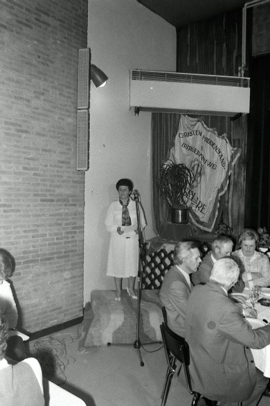 De christelijke Middenstands- en Burgersvrouwen (CMBV) namen afscheid van hun voorzitster, mevrouw Vanthuyne-De Baets, die 31 jaar voorzitster was geweest. Het CMBV werd gesticht in 1951. Een tachtig leden verkozen toen “madame Vanthuyne” als hun trekpaard. In 1982 gaf ze de fakkel door.