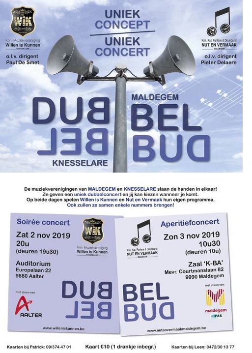 WIK speelt begin november een dubbelconcert met de fanfare Nut en Vermaak van Maldegem. Elke groep voert een eigen programma uit, en vanzelfsprekend brengen de beide korpsen samen enkele nummers.