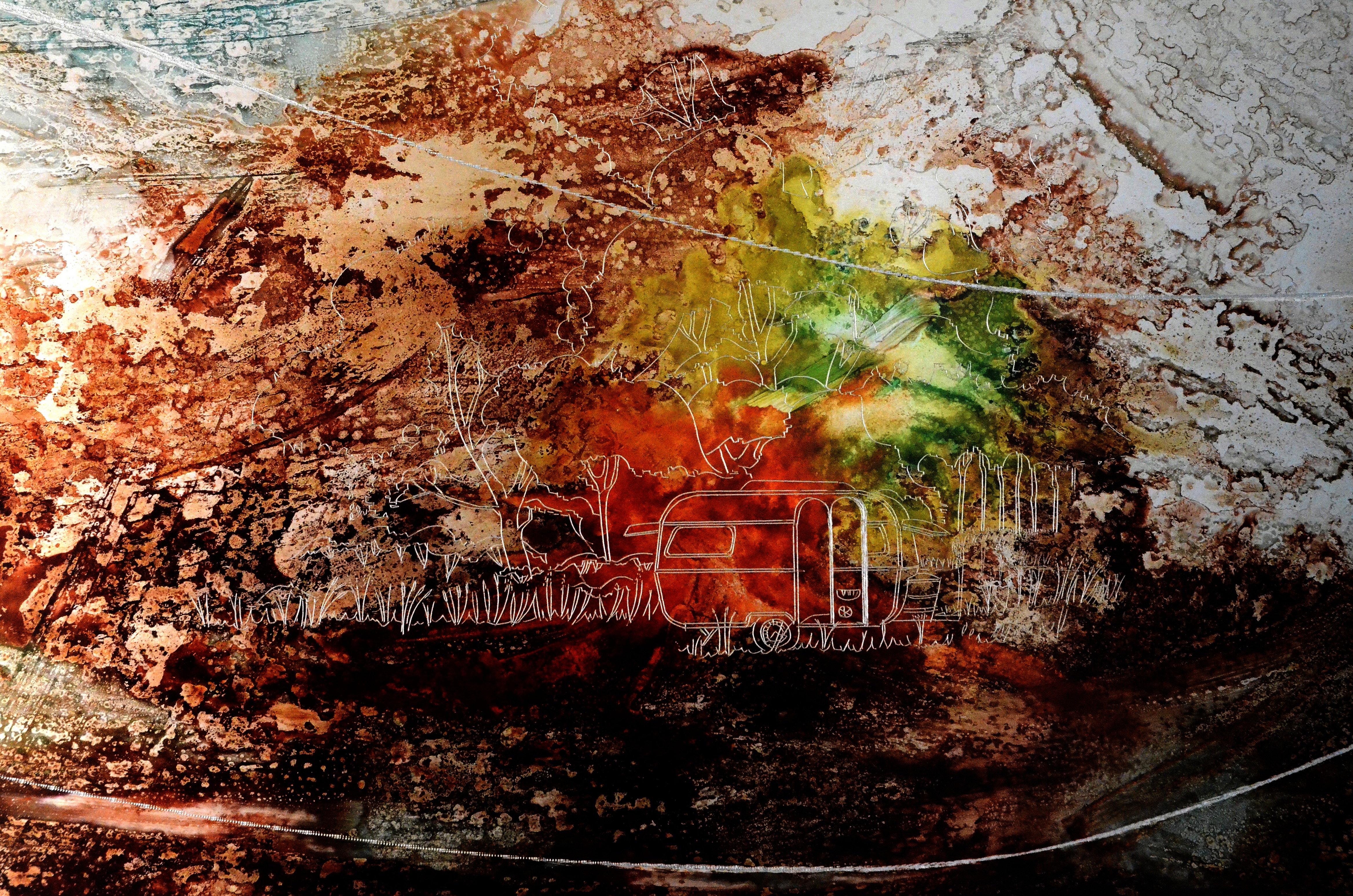 Het ging om een fragment uit een werk van 4,70 op 0,56 meter, waarop een caravan was afgebeeld. Het graveerwerk wil blijkbaar een stuk van de Knesselaarse erfgoed en economie in beeld brengen: we herkennen de kerktoren, de pastorie, de Driesmolen, de kapel van O.L. Vrouw-Voorspraak, de sigarennijverheid, de landbouw, deledernijverheid, en … Caravan De Reu…” ZIE AFBEELDINGEN VERDEROP