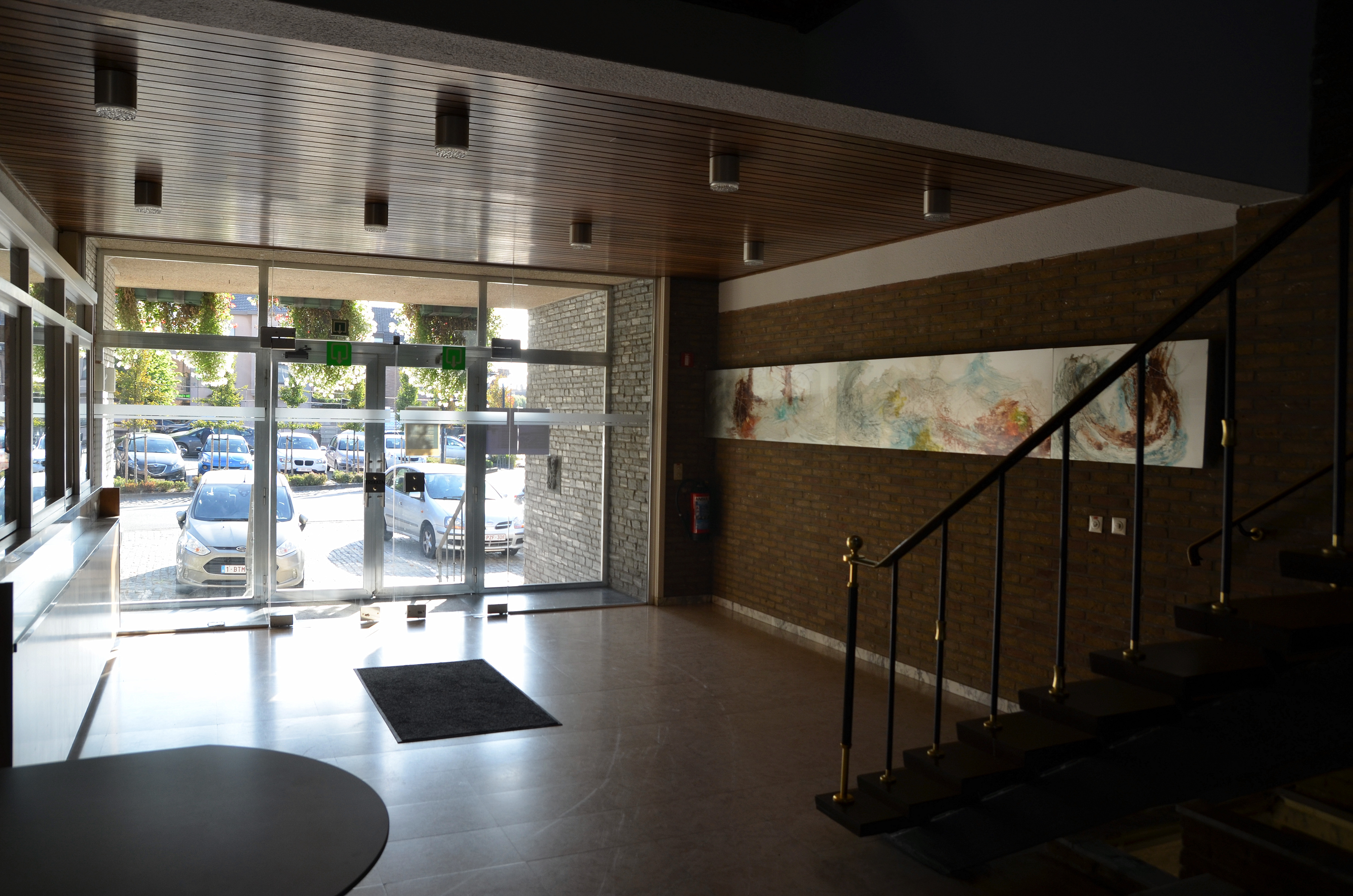 Het kunstwerk (metalen panelen) hangt sinds 1972 in de inkom van het gemeentehuis (linkermuur als je er binnenkwam). Vooreerst vermelden dat Daniël De Spae (Ursel, vroeger Veldstraat Knesselare) het eerst reageerde op onze vraag. Mooi, zo.