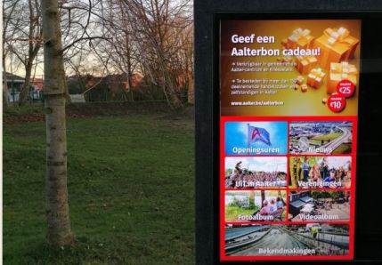 Er wordt ook gevraagd welk doelpubliek die borden eigenlijk moeten dienen? Staat alle (contact)info over verenigingen, gemeentelijk nieuws of de agenda dan niet op de website van Aalter (uit in Aalter-kalender) of op de Aalter-app en kunnen we die niet thuis en elders op onze gsm, tablet of PC bekijken? Wie zal voor dat “nieuws” speciaal naar de sporthal of De Plaats rijden om er een digibord aan te tikken?