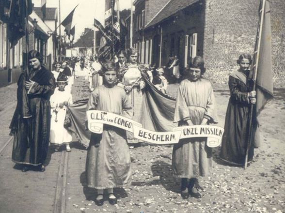 Andere sporen in de memorie leiden ons naar processies omstreeks het midden van de vorige eeuw, waarin in Knesselare zelfs een Onze Lieve Vrouw van Congo meeliep. Met diezelfde bedoeling. Maar ook met de bedoeling om het geloof te verspreiden.