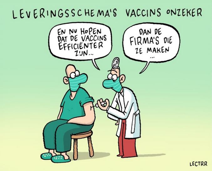 Het zielige verhaal van de levering en beschikbaarheid van de vaccins zullen we hier niet brengen. Wie niet op een andere planeet woont, weet dat vooral AstraZeneca niet bepaald fonkelt in vaccinatieland. Te weinig, te laat, en discussie over de veiligheid, maar ook over de verantwoordelijkheid van de trage, krenterige en verdeelde Europese Unie hiervoor. Ook bij de andere leveranciers zijn er problemen. We houden het bij lokale info. Wie dat wel nationaal wil volgen kan dat via deze Deze link.