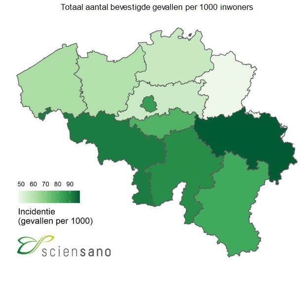 Regionale spreiding bevestigde gevallen per 100.000 inwoners