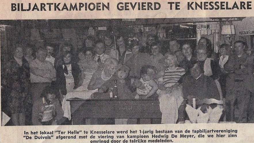 Er stonden tapbiljarts in veel Knesselaarse cafés, maar er was er maar één waar lang in competitie werd gespeeld (en vandaag opnieuw). Een nieuwe club ‘De Duivels’ kwam er in Ter Helle (1978), maar lang heeft die niet bestaan.