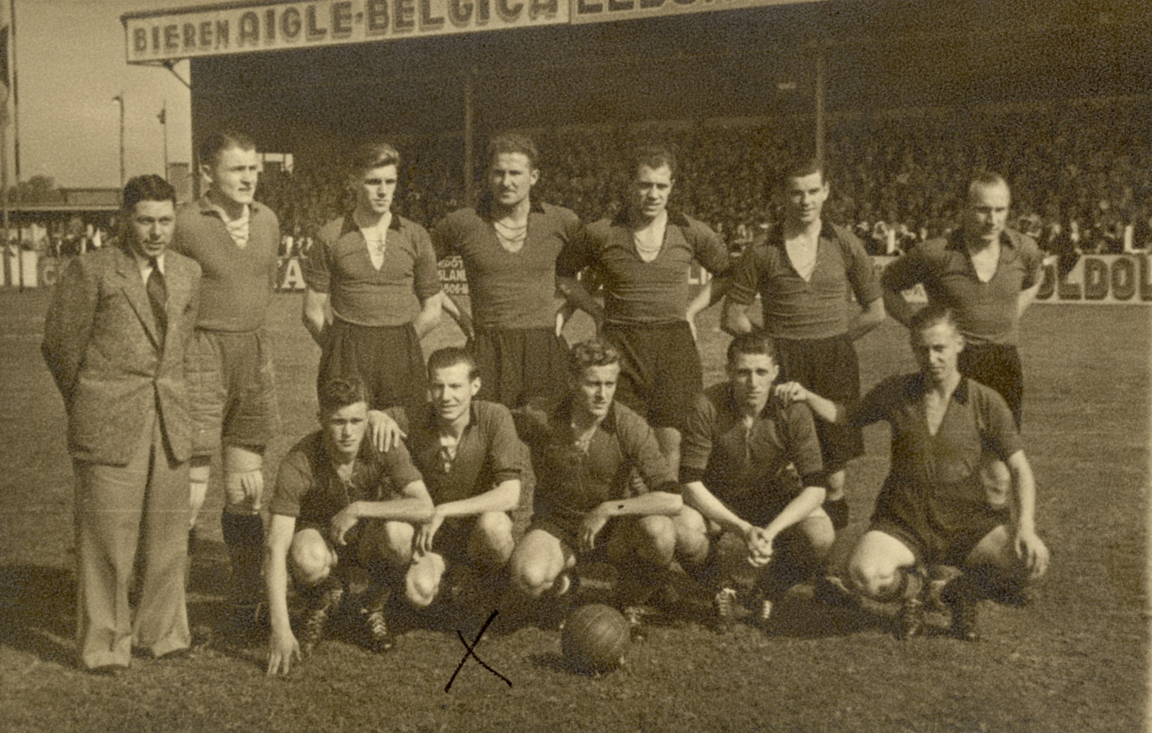 Edgard (onderaan midden foto) speelde met Club kampioen in 1949.