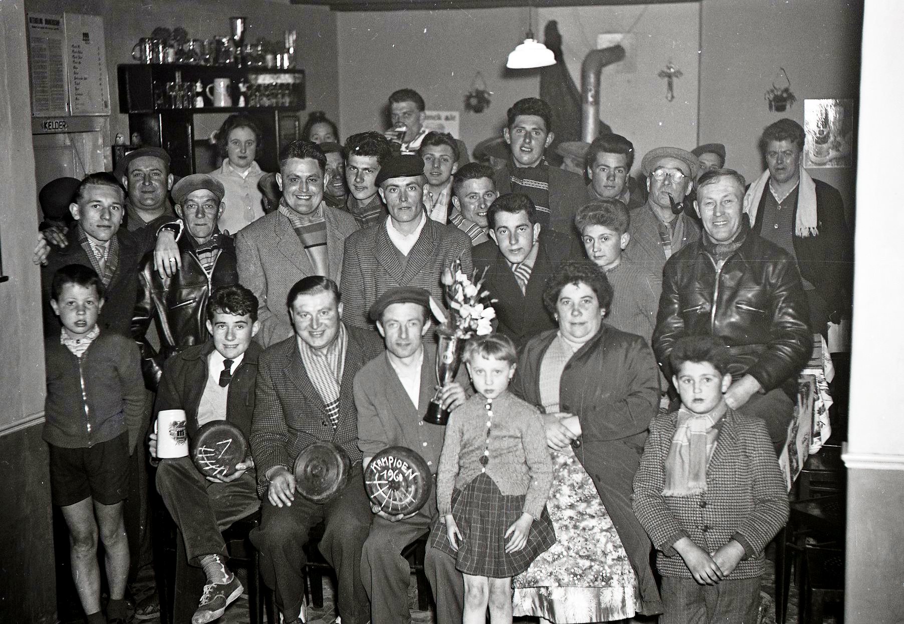 Bolderskampioen Leon De Meyer wordt gevierd in Café Eentveld bij Anna Bruggeman (1960).