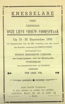Het is in die tijd dat er van de bevolking volop aandacht wordt gevraagd (en bekomen) voor de 200ste verjaardag van de Knesselaarse Grote Kapel.