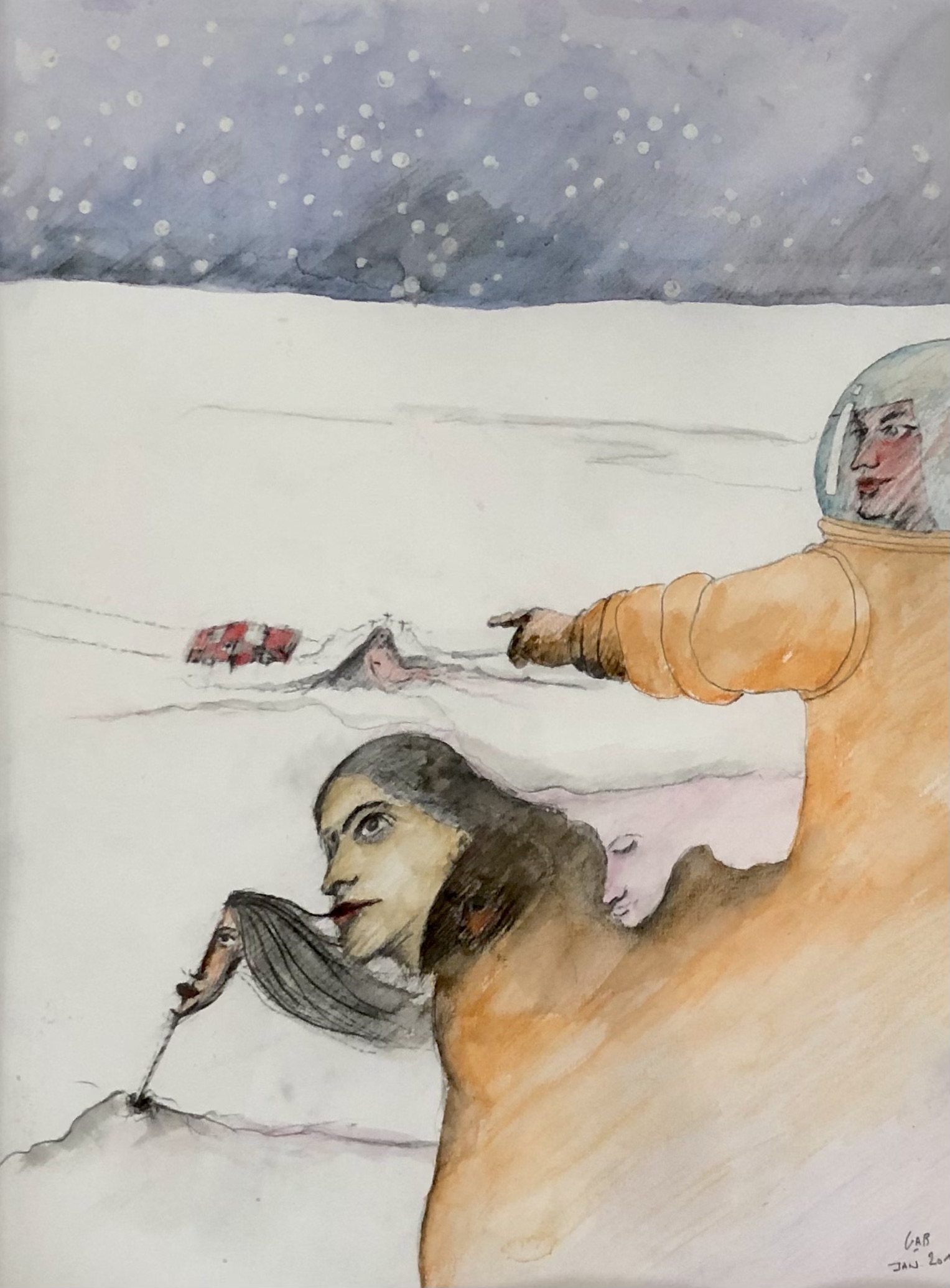 In 1982, toen een atoomoorlog dreigde, had hij met Homo atomiens ook al een portret geschilderd van een man met een gasmasker op en in 2010 schilderde hij in een sneeuwlandschap een man met een ruimtevaartpak aan en een helm op het hoofd. Isolement is een thema dat ook terugkomt in het werk met de vis in een vogelkooi: de vis zit achter tralies en op het droge.